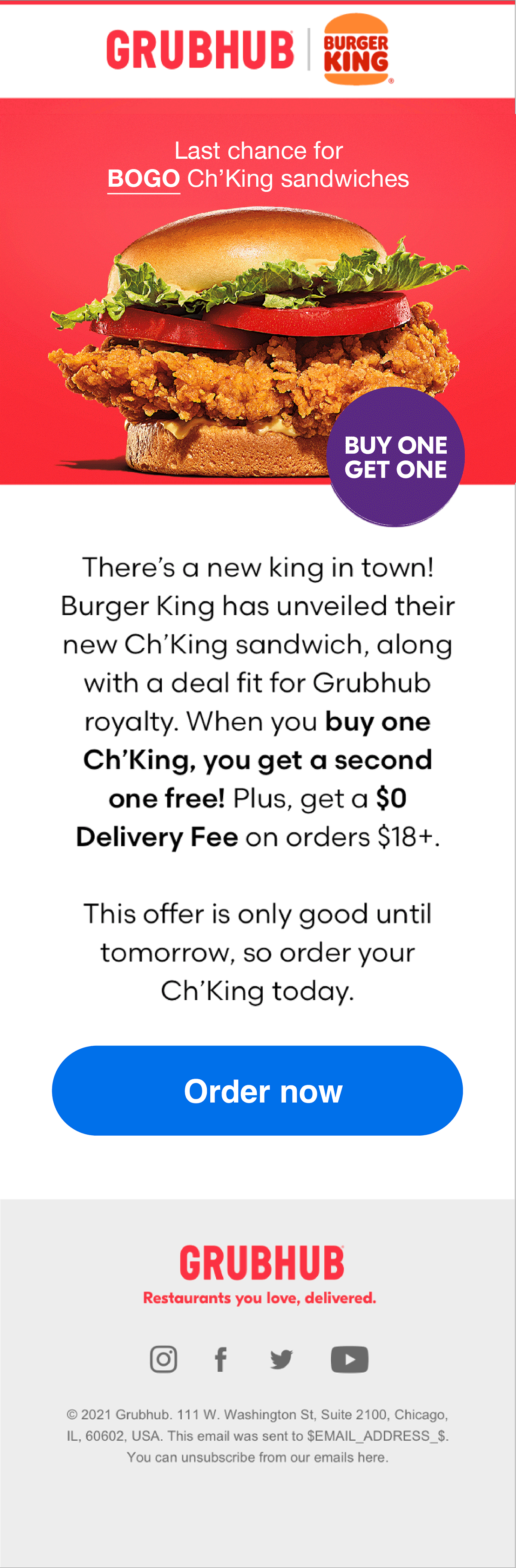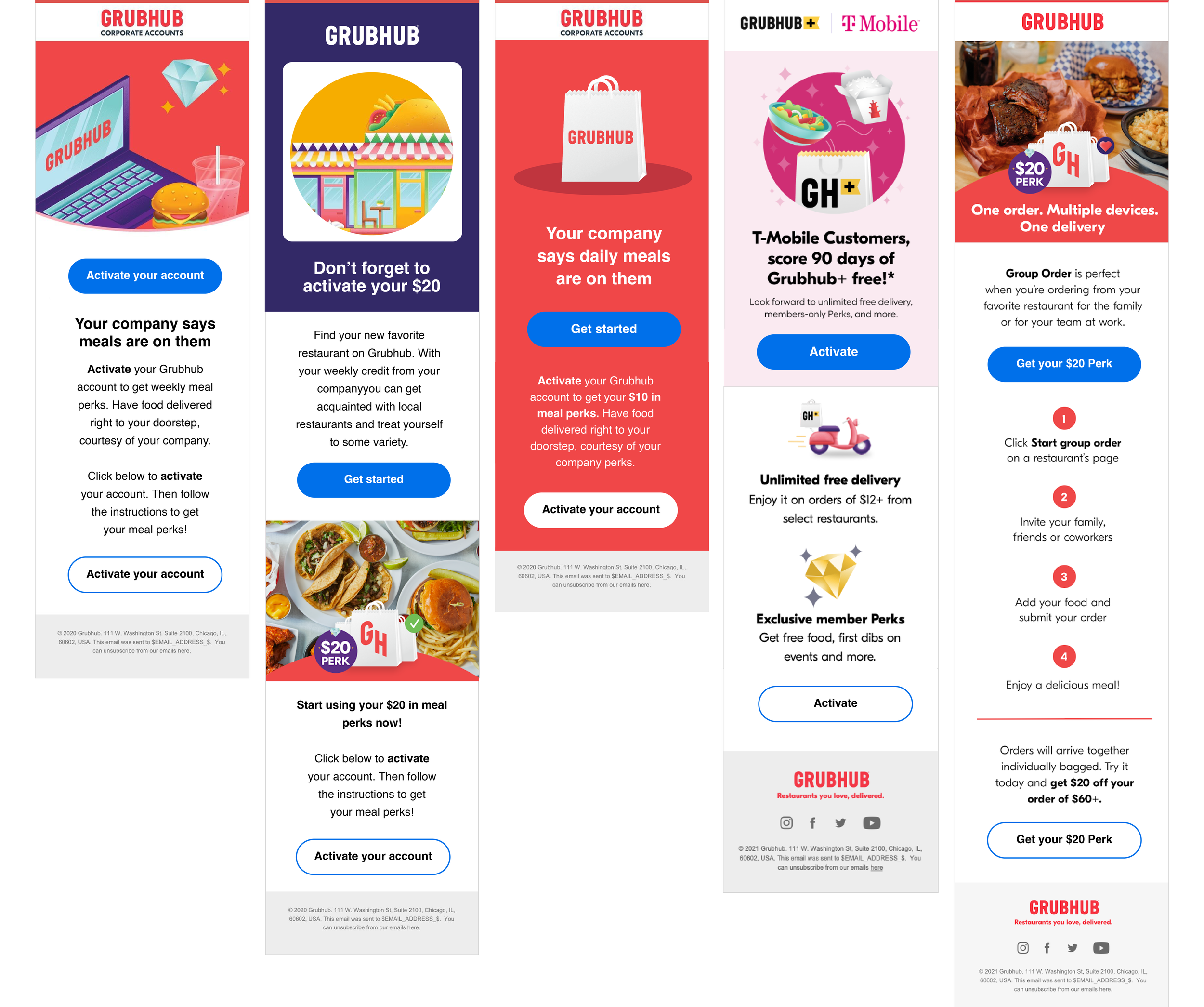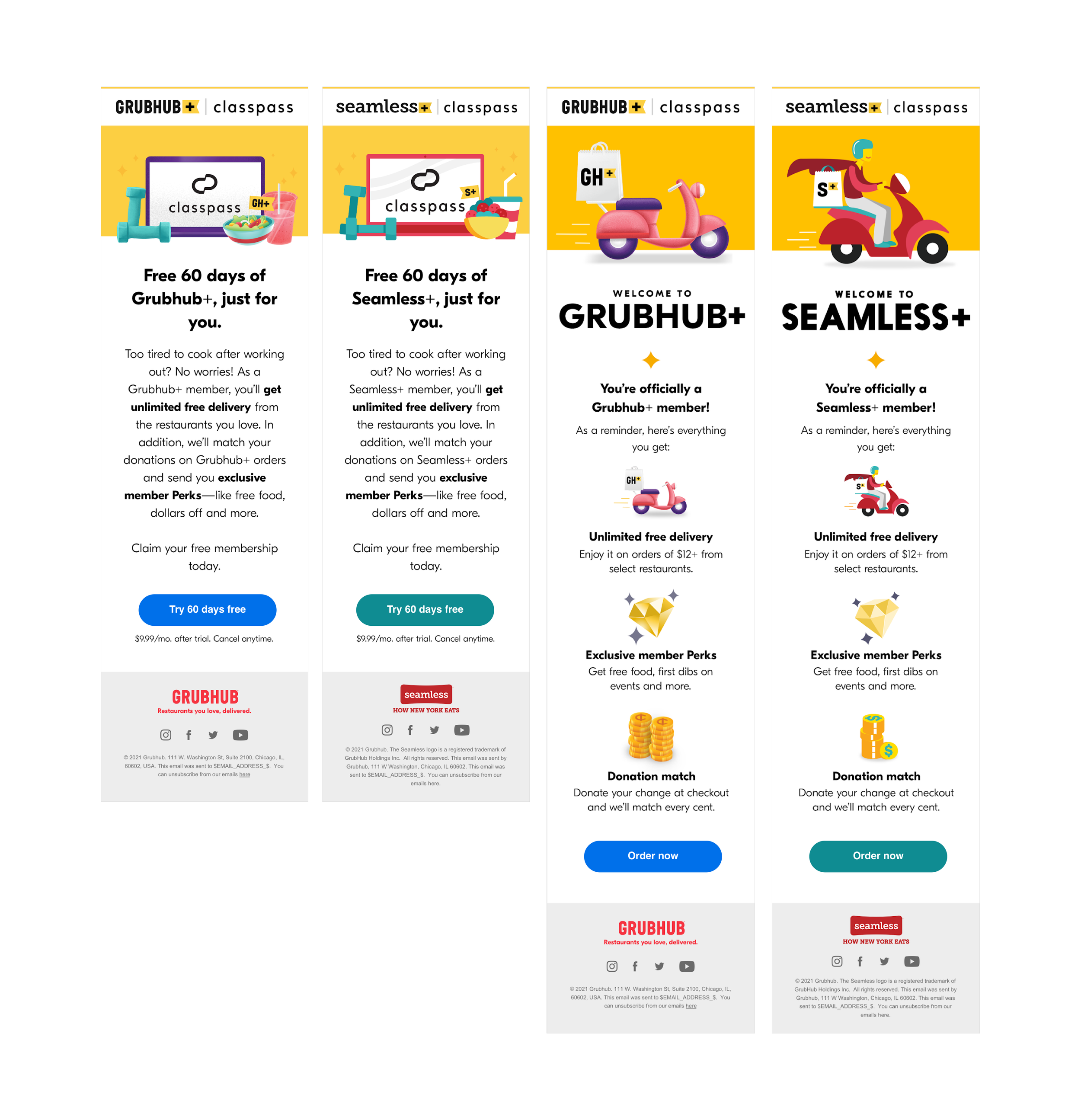 Email campaign Grubhub+ | classpass: Desktop and Mobile